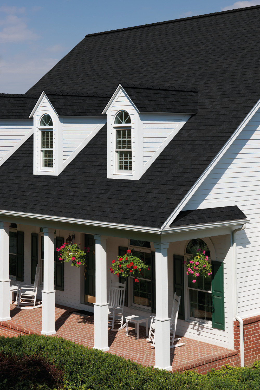 XT25 325-lin ft Moire Black 3-tab Roof Shingles. So if you have a smaller. The design of this traditional red brick house is even better because of the existence of the grey window shutters which color matches the color of the roof excellently.